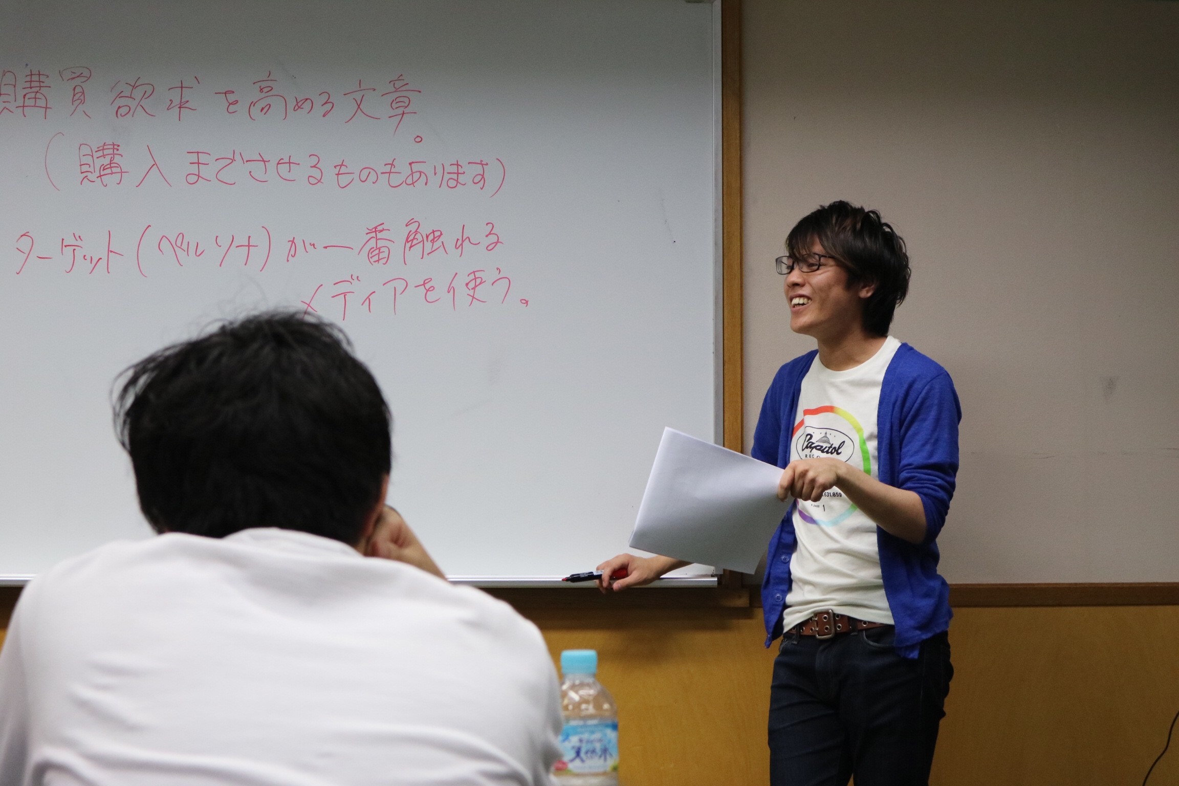 5/31活動報告! 投稿日: 2016年6月1日2018年11月30日 投稿者: axis-circle こんにちは!毛利です! 今週の活動報告です! 今日のテーマは 「メッセージとメディア策定」 でした。 私たちがよく目にする広告の目的は何なのか、キャッチコピーの役割とは、どのようにメッセージを伝えるのか、等について学びました。 そして学んだらすぐに実行するのがAXIS流! 早速各企画ごとにキャッチコピーやメッセージについて話し合いました。 そしていよいよ来週からは実際に集客開始です! どの企画も成功するよう頑張りましょう!