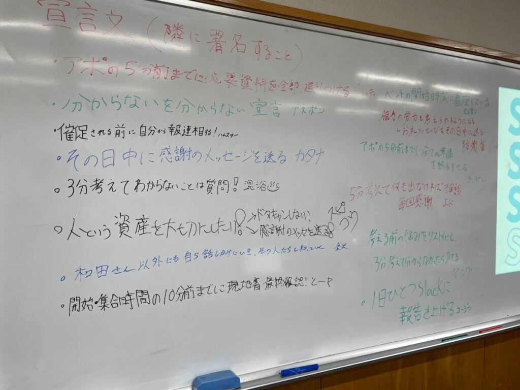 同じコミュニティだからこそ、口だけの宣言であればすぐに共有されます。全員本気で変えなければという想いで宣言をしました。