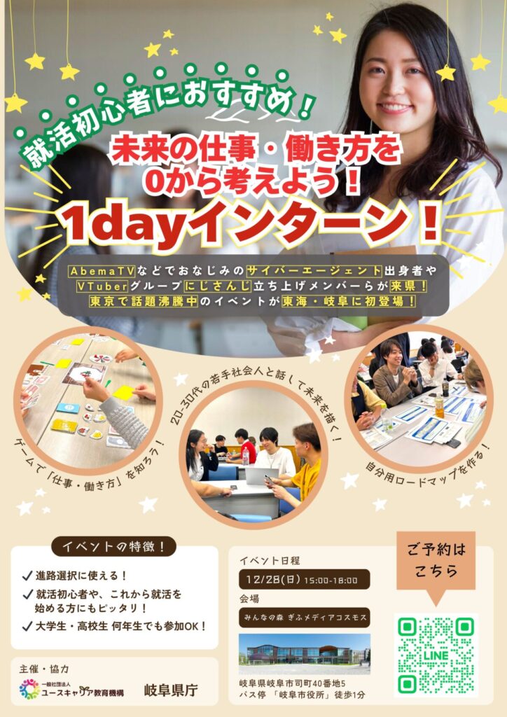 岐阜県庁とユースキャリア教育機構がタッグを組み、岐阜や周辺地域の学生たちに「働くことを考える最初のきっかけ」を届けます。